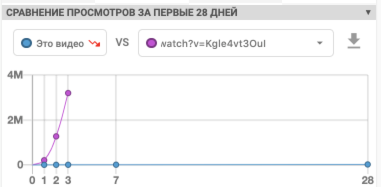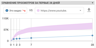 Сравнить показатели своего и чужого видео очень просто. Просто вставьте ссылку на ЛЮБОЕ видео в специальное поле и через секунду вы увидите детальное сравнение хронологий развития двух видео.